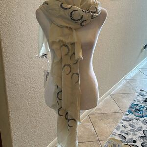Wildfox Women's Signature Ivory Cream Wrap Scarf Creasant Logo Fringe Hem New