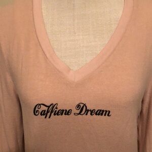 Wildfox Caffiene dreams v neck pullover in blush pink with black lettering. long sleeves and bottom has ribbed cuffs. Name tag but no price tag. New, never worn xsmall
