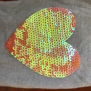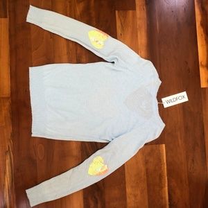 New with tags Wildfox cashmere sweater! Incredibly cute and soft :) The sweater is light blue, and the sequins are peachy and shine a light green-gold color in the light! There's a heart on the front and hearts on the elbows. Bought it new at Saks for $148!