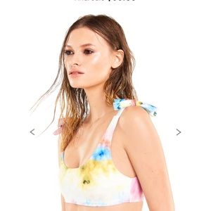 Angie top & Dani bottom. Top features tie shoulders that are adjustable. I bought the wrong size and it was final sale. Top is small and bottom is a medium, both fit like an xs/s. This bikini is so pretty, it was only tried on once.