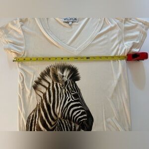 Wildfox cream v-neck tee zebra graphic retro sz S stretchy ribbed shirt