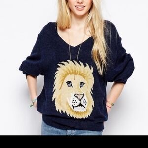 Wildfox oversized wool-blend blue lion lightweight knit sweater XS