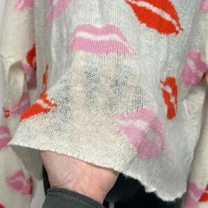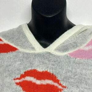 Wildfox white label knit hoodie with red and pink lip print size XS