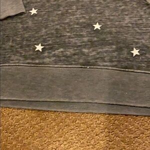 Wildfox Dark Grey & White Star Sweatshirt. Super soft. Made of polyester, cotton and rayon worn once. Size M. Pit to pit 26” 26.5” shoulder to bottom hem. BK.