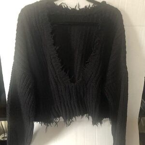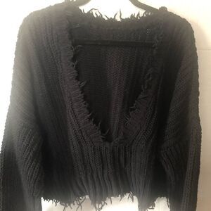 Wildfox Deep-V Reversible Palmetto Sweater Black