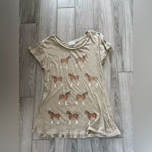 Wildfox|Distressed tan horse print tee,burnout style•••boho novelty print