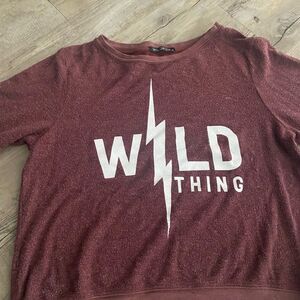 Wildfox Maroon “Wild Thing” Cropped Crewneck Sweatshirt