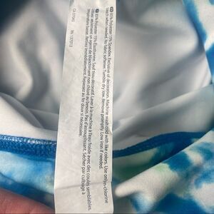 Dry-Wik Moisture Control Keeps Your Skin Dry. 7/8 ankle length. Blue, green, white tie dye print. Soft material. Stretch. Size Small Polyester/spandex.