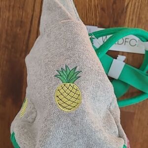 WILDFOX TERRY TOTE BAG - NWT - INCLUDES DETACHABLE SHOULDER STRAP - SIDE POCKETS ON EACH END - PINEAPPPLE APPLIQUE FRONT AND BACK - ZIPPERED CLOSURE - NWT