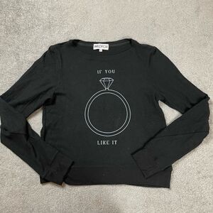 Wildfox Women’s Small Black Long Sleeve If You Like It Ring T-Shirt Top NWOT