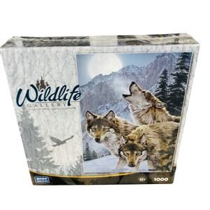 Up for sale is a Wildlife Gallery: Moon Dancers Wolf 1000 pc jigsaw Mega Puzzle. Puzzle is unopened. See pics for overall condition.