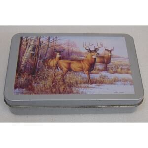 Wildlife Lockback Buck Deer Knife Collectible Tin Stainless Steel Blade Feathers