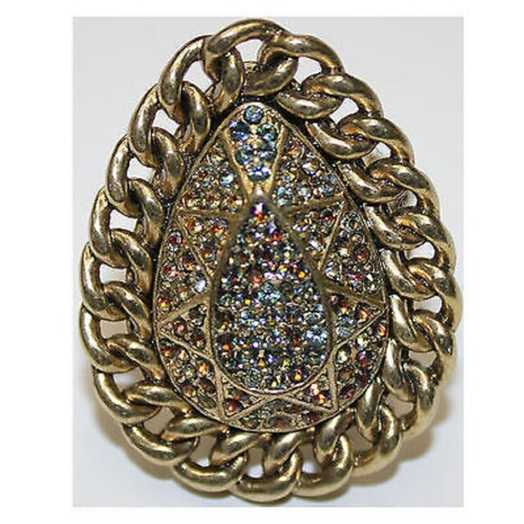 Stunningly chic. Round, pave-set crystals add an extra dimension of sparkle to this teardrop-shaped ring. A curb-link chain frame and beaded stretch band complete its bold and brilliant design. From Wildlife by Heidi Klum. Size Medium
