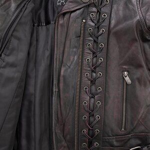 The Wildside is a buttery soft cowhide jacket with a little something extra - the lace down front for extra style points. This jacket has a removable liner and vents, so it is perfect for chilly motorcycle rides, AND warm ones!
