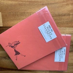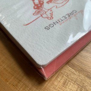 Pack of six beautifully printed cards designed by Wiley Valentine. Luxe Cream 4.5 x 6.25, portrait alignment, folded cards. Heavy weight textured stock. Artwork printed on envelope as well. New in pack. Possible fading around envelope edge but hard to tell without opening package.