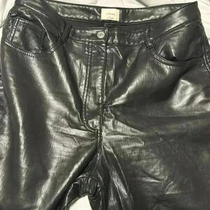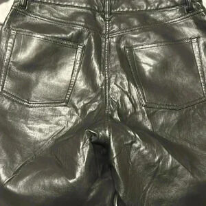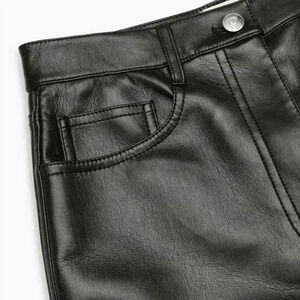 Sold out on line!!!The one, the only, the Melina. These are super high-rise straight-leg pants with five-pocket styling and a universally flattering fit. They’re made with our innovative Vegan Leather that looks and feels like the real thing. They have an authentic drape and soft sheen that feels right from day one. Deep pockets in the front, no holes or rips observed. Feels like real leather!! Super high rise that go around the belly button- but add a crop top and some heels it’s a perfect look for a night out!! Machine wash cold separately bleach when needed dry flat do not iron or dry clean 100% polyurethane