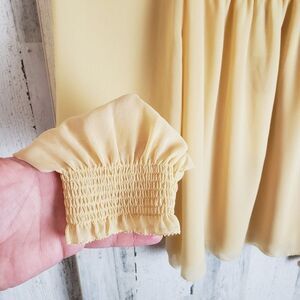 ~ Description: Tan-ish/yellow-ish top, double layer chiffon, long sleeves, non-stretch