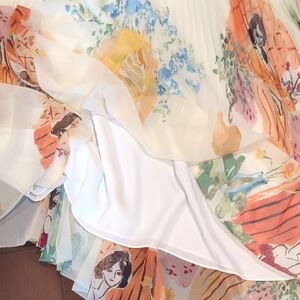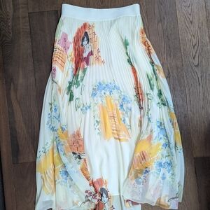 New without tags; fully lined with elastic waistband. Chic A-line skirt with vibrant pleats. Features multicolor floral patterns. Ideal for a stylish look.