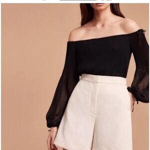 Wilfred Aritzia Black Off-the-Shoulder Chiffon Talence Blouse Size XXS