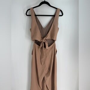 Wilfred Aritzia Classic Career Tan Back Tie Zip Up V Neck Jumpsuit