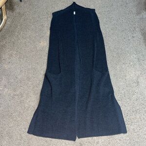 Wilfred Aritzia Dunkirk Merino Wool Long Sweater Vest Duster Ashen Grey Small. Longline duster sleeveless sweater vest. Split hem. Herringbone knit trim. Front pockets. Approx measurements: 43" long. Great pre-owned condition. No stains/flaws. Smoke/pet free home. Offers welcome. Bundle & save. Ship same/next day. Packaged w/ care.