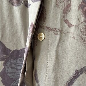Additional features: This collarless shirtdress is designed with an oversized yet streamlined silhouette. It's made with a double-faced silk that's specially treated to have dimensional highs and lows throughout the fabric. Design features include a hidden front placket, a waist-defining seam, and a sculpted hem with a slit on each side.