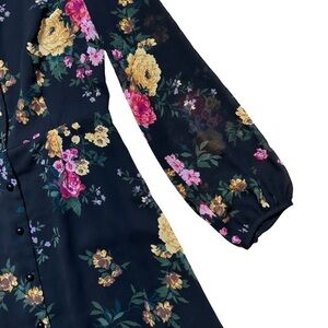 In great condition •Aritzia •Wilfred •A-Line •Sheer Long Sleeves •Main Body Lined •Pullover •Mini Dress •Floral Print •V Neckline
