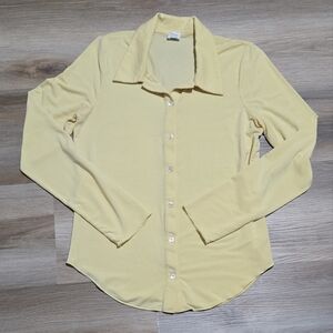 Wilfred Aritzia Pose Jersey Yellow Button-Up Tencel Lyocell Soft Shirt Size L