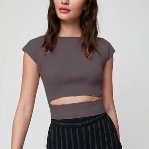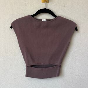 Wilfred Aritzia Ribbed Cut Out Crop Top in Chocolate Brown Size XS