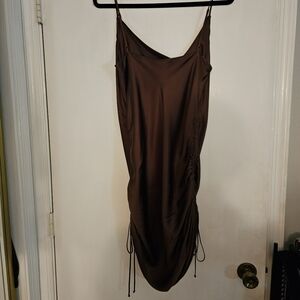 Wilfred Aritzia Ruched Copper Brown Slip Dress Size Large