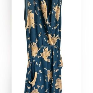 Wilfred Aritzia Sabine Turquoise Floral Sleeveless Dress. Size small. Faux wrap. Pockets.