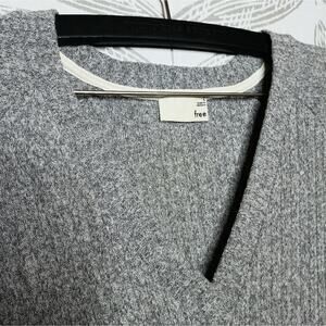 Wilfred Aritzia Sweater Ribbed Tunic Length V Neck Gray Neutral