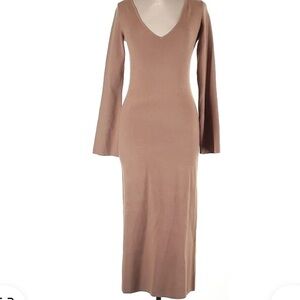 Wilfred Aritzia Tan Ribbed Knit Maxi Midi Bodycon Long Sleeve Dress Large