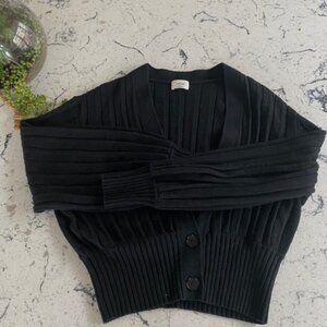 Wilfred Aritzia Thais Plunge Wool Cropped Cardigan in Black Size Small