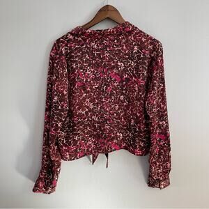 Wilfred | Aritzia Tie Front Blouse Button Down Cropped Pink Fuchsia Brown Top M