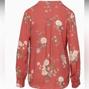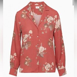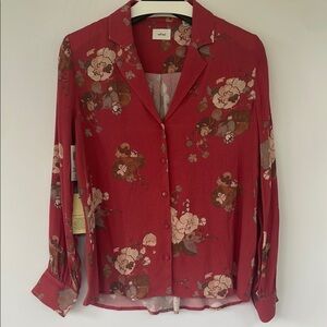 Wilfred Aritzia Tulum Blouse Red Long Sleeve Notched Collar Floral Blouse Small