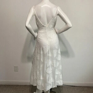 Wilfred Aritzia White V-Neck Semi Sheer Textured Leaf Sleeveless Maxi Dress Sz S