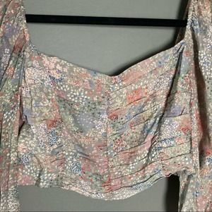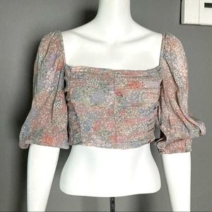 Wilfred Aritzia crop Lolita blouse top prairie l/s mini floral top. puff blousy sleeve. Smocked bodice with elastic cuffs and hem. New without tags.