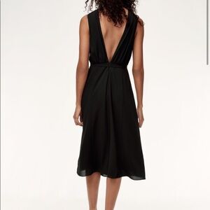 Wilfred Aritzia black chiffon halter neck dress with deep V back. Hits just below the knee. Lined. Belt loops - missing tie belt.