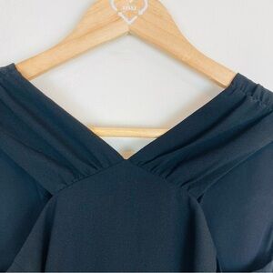 Wilfred Aubrey halter front deep v back black chiffon dress. Size 00