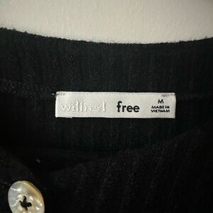 Elegant black ribbed top with button-down design. Ideal for layering and versatile styling.