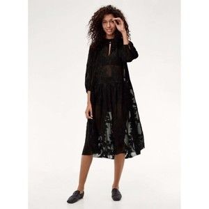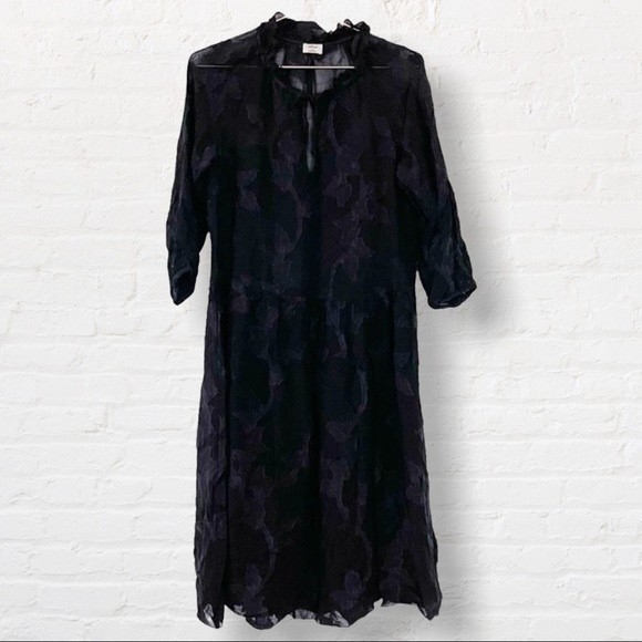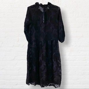 Wilfred Black Sheer Floral Appliqué Lace Babydoll Dress Size XS
