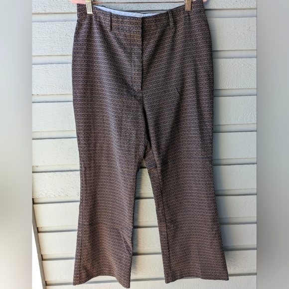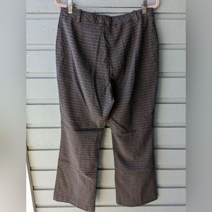 Stylish brown patterned pants. Flared leg design. Perfect for casual or formal wear.