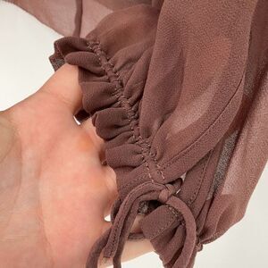 Wilfred Burgundy Chiffon Sheer Pleated Ruffle Collar Lourdes Blouse Size Medium Brand: Wilfred Department: Womens Size: Medium Color: Burgundy Style: Basic Closure: Button Material: Body/Lining: 100% Polyester | Trim: 100% Silk Pattern: Solid Condition: Pre-owned. No visible flaws. Features: - Chiffon fabric - Comfort - Ligtweight - 3 Functional shoulder buttons - All-seasons - Extra button - Self-tie cuffs - Dry clean only Approximate Measurements: Pit to pit: 26in Length: 24in See all pictures for details. OFFERS ARE WELCOMED - Ships Same/Next Day