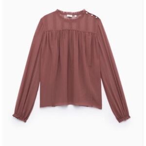 Wilfred Burgundy Chiffon Sheer Pleated Ruffle Collar Lourdes Blouse Size Medium