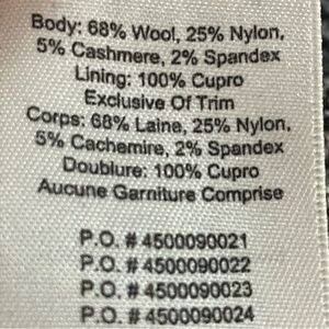 Wool and cashmere blend. Front pockets. Right rear pocket. Soft. Excellent used condition.