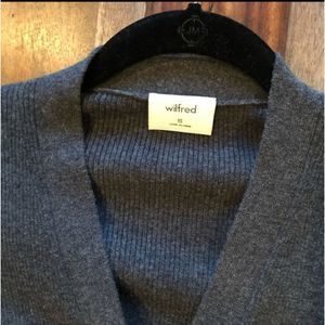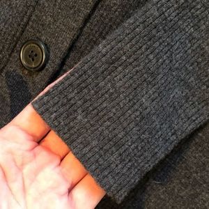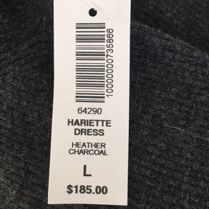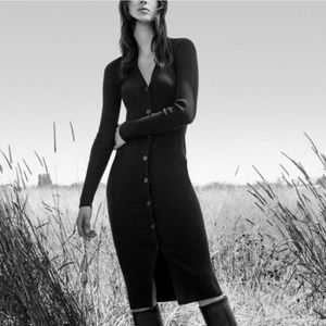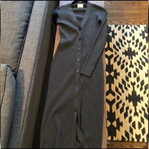 Chic charcoal midi dress. Features button-down front. Long sleeves for a sleek look.