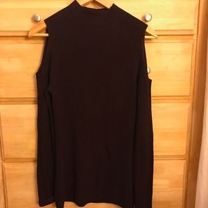 Wilfred Bonnard Eggplant Sweater. Hard to see in the photos but its a dark eggplant purple color. Cold shoulder, not quite a turtleneck. Very stretchy. Worn only once or twice. Size Large.