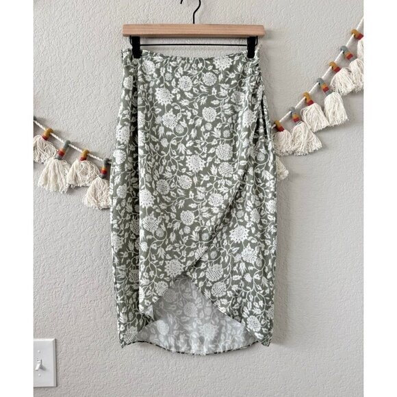 Wilfred Cressida Satin Light Birch Floral Midi Wrap Skirt Green Boho Coquette 6