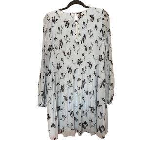 Wilfred Daydreamer Pleated Floral Mini Dress | Blue Chiffon Long Sleeve | Large